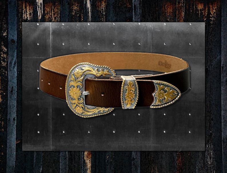 Custom Made Western Belt Engraved Antique Silver Gold Buckle Set Thick 70s Style Top Grain Leather Belt Hand Burnished Artisan Brown Www Passodecamaragibe Al Gov Br